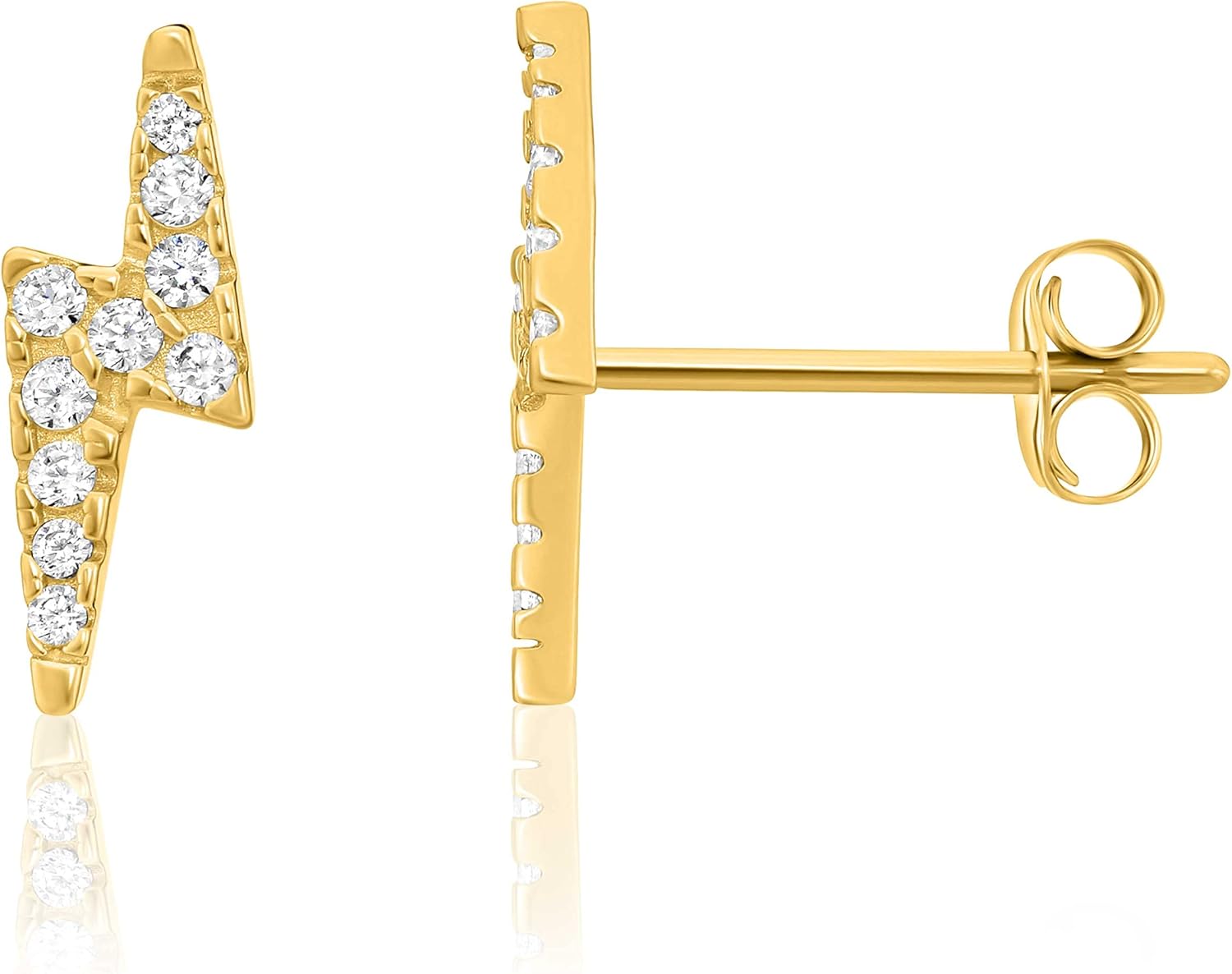 These 14K Yellow Gold minimalist lightning bolt earrings are designed in a delicate yet sophisticated shape to give an edge to your look. Our cubic zirconia lightning studs will add a flash of brightness to your day and stay securely on your ear with a pair of solid gold push backs. Great for stacking earring looks, on their own, everyday and for special occasions.