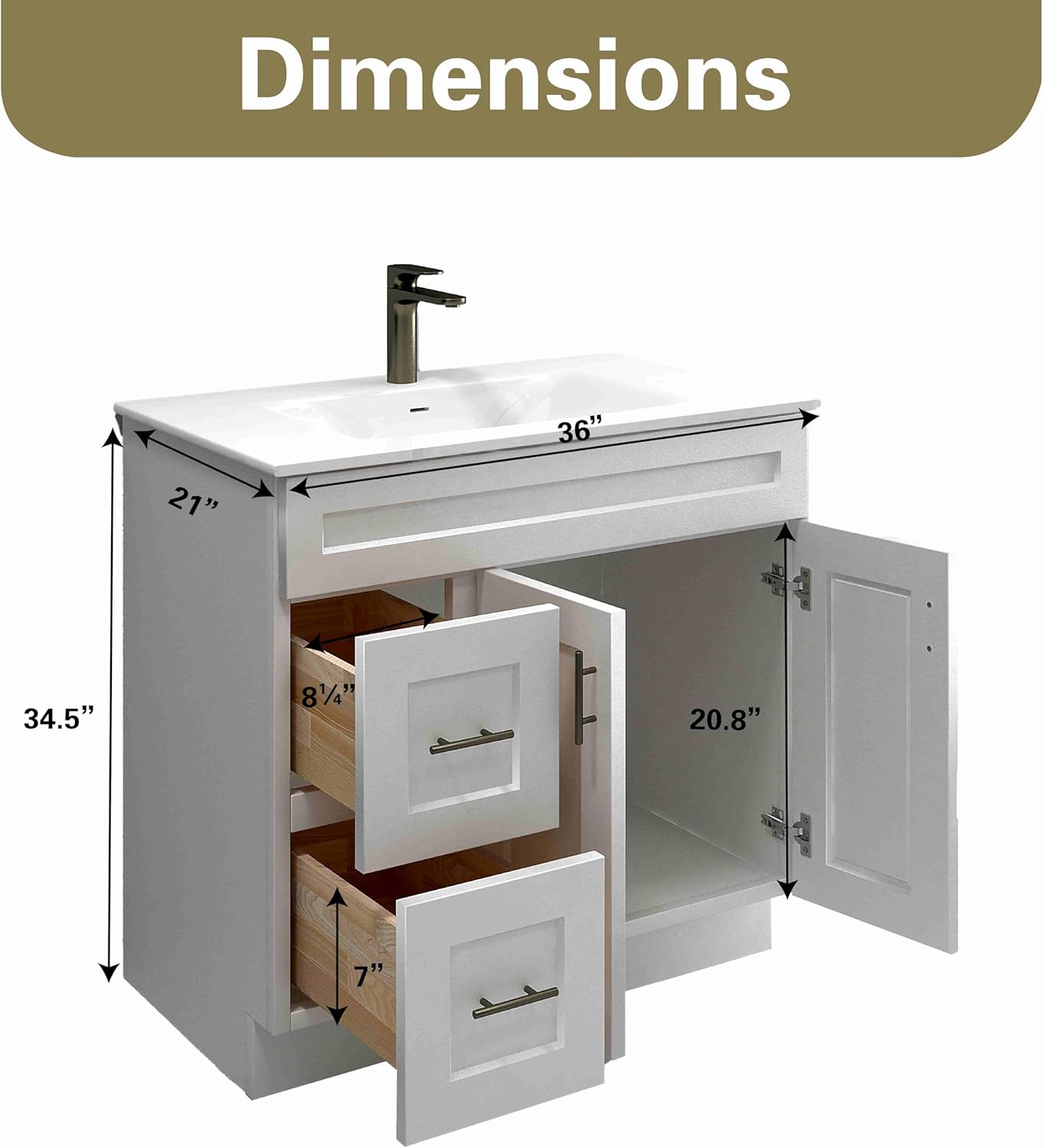 | Style Name | 36" White Shaker Bathroom Vanity with Sink |