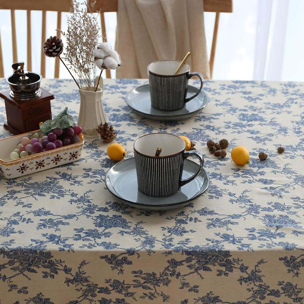 ARTABLE Table Cover Rectangle Farmhouse Style Tablecloth for Kitchen Home Wedding Outdoor Indoor Picnic Decor Feature: MATERIAL: 100% treated polyester; Color: Blue; EASY TO CARE: Machine washable, gentle cycle and tumble dry low, do not bleach or run them through a hot dryer; Design: This tablecloth is covered with a lamination process, which is waterproof and oil-proof, and does not need to be washed frequently; WIDE USE: You can decorate for any occasion with this lovely table cover. Putting it in your dining room for that farmhouse or boho look. It can not only dress up a table, but also dress up your feeling; Occasions: Our macrame tablecloth is suitable for home decor, wedding favor, bohemian themed party, bridal shower, baby shower, rustic wedding, country wedding, anniversary, birthday, housewarming gift, holiday, fall decor, Christmas, garden, beach, woodland, shabby chic, barn, will impress your guests.