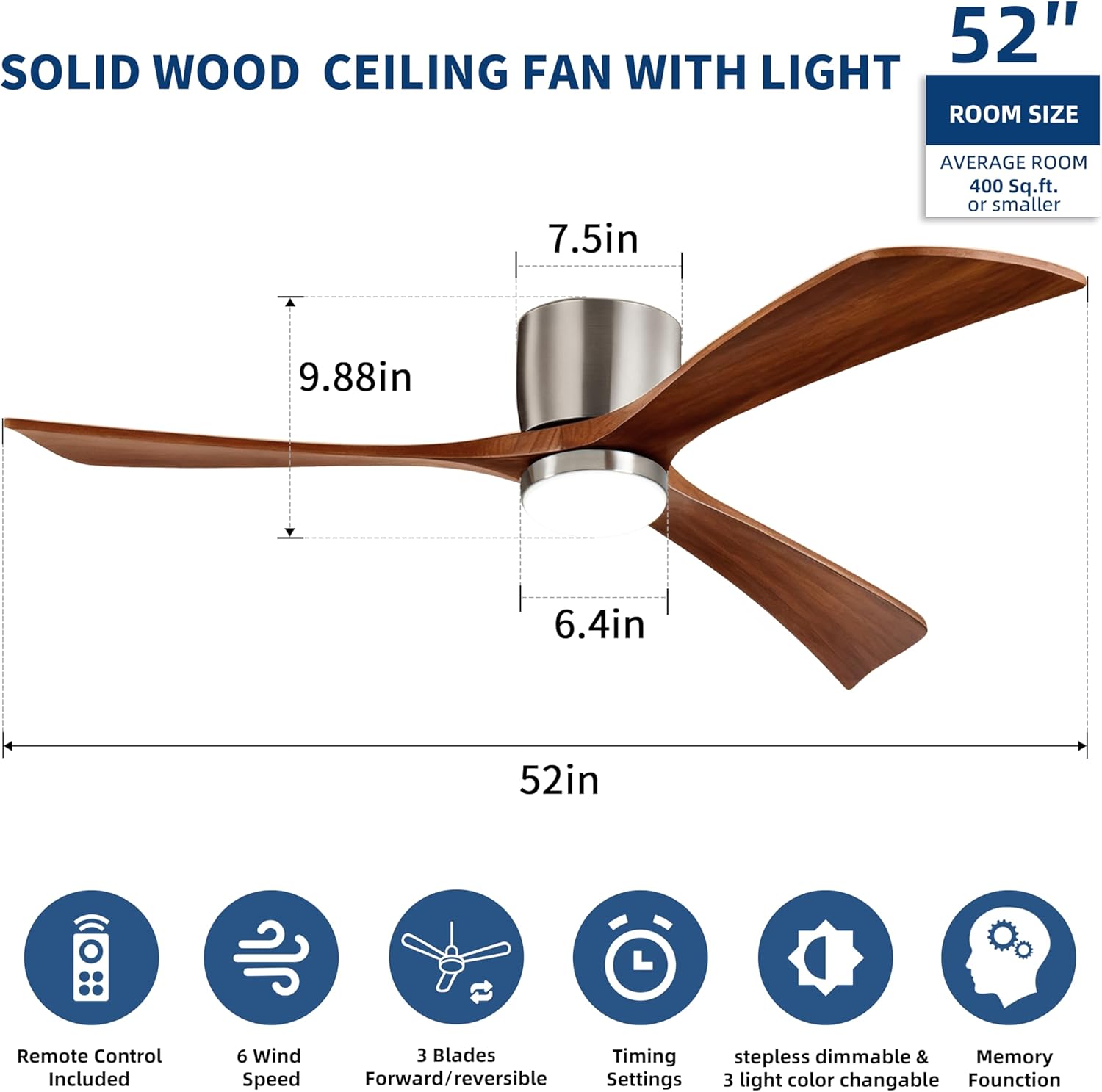 | Model Name | 52" Soild Wood Ceiling Fans with Light and Remote Brushed Nickel |