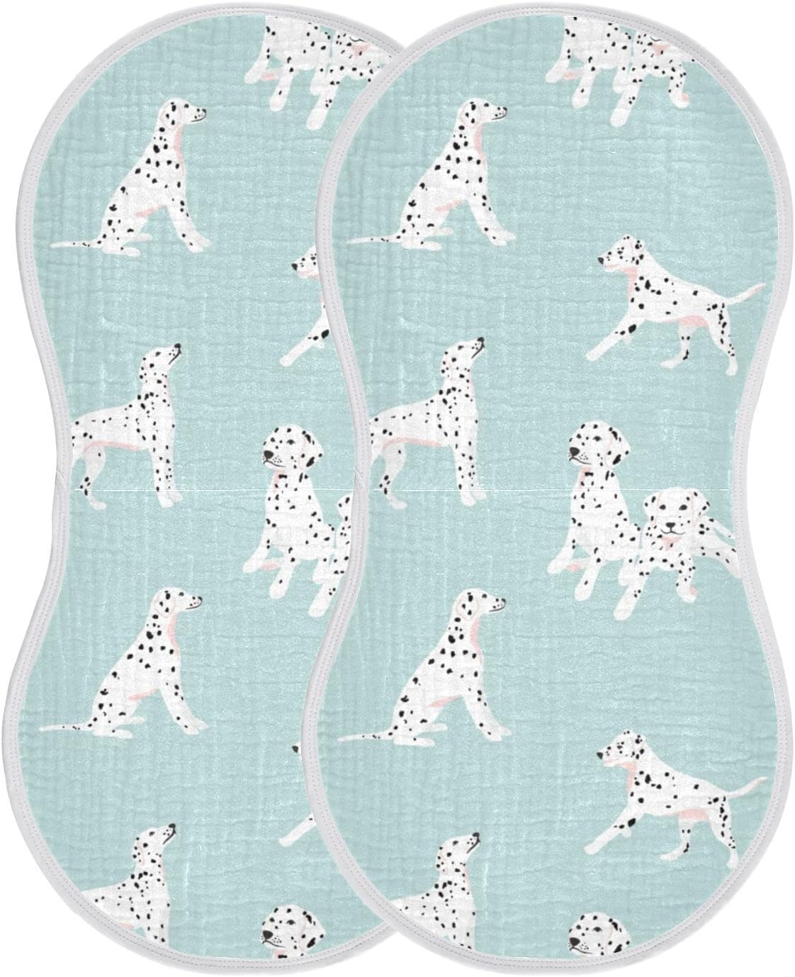 YYZZH Dalmatian Dog Pattern On Blue Muslin Burp Cloths Feeding Cloth for Baby 4 Pack Soft 100% Cotton Super Absorbent Baby Washcloths Bibs for Boy GirlSizes: 22 x 11 inches / 56 x 28 cm; Including 4 items; One-sided full print;Material: 100% cotton (Contact surfaces) + TPU composite polyester (100% polyester + 100% polyester ammonia film);Product description: Burp Cloths Feeding Cloth are made of cotton yarn fabric, 4-layer cotton yarn, soft and thick, good water absorption effect, the fabric is skin-friendly; Wrap edge craftsmanship, will not grind; There are sewing straps on the top, which can be used for suspension, which is convenient for storage and does not occupy land;Feature: there is a composite TPU waterproof film at the Burp Cloths Feeding Cloth bottom, prevent penetration of the bottom layer; Can be used as a burp cloth / feeding cloth, absorb water, and not seep water, and effectively prevent clothes from dirty; It can also be used for baby/children's scarf, saliva towels, pillow towels, baby bibs, etc;Washing instructions: routine washing; Washing with warm water less than 30℃; Detergent such as bleach should not be used; Should not soak for a long time; Can be washed, ironed, and can be machine washed gently, do not dry clean.