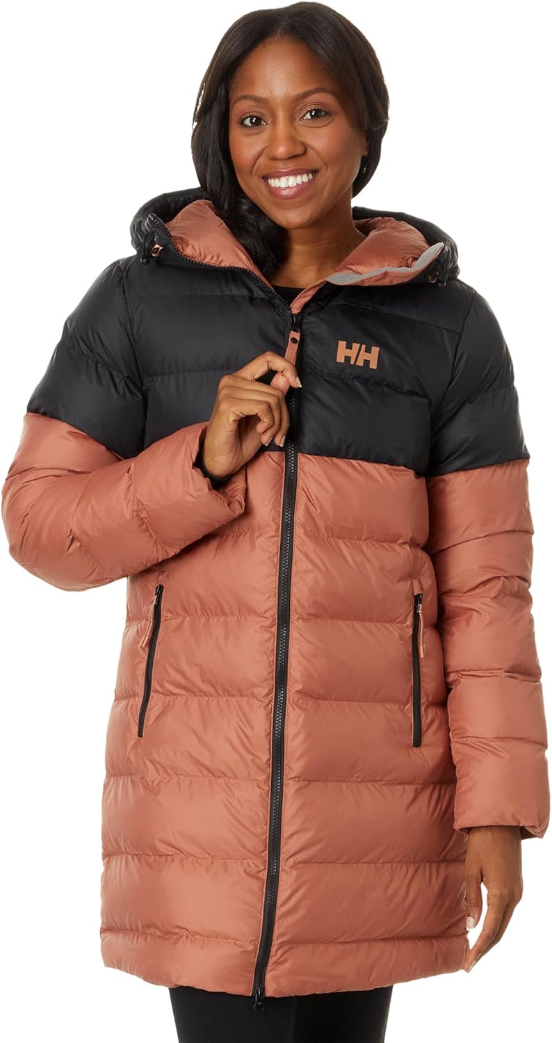 • A women’s puffy parka designed for warmth and comfort in and around the city