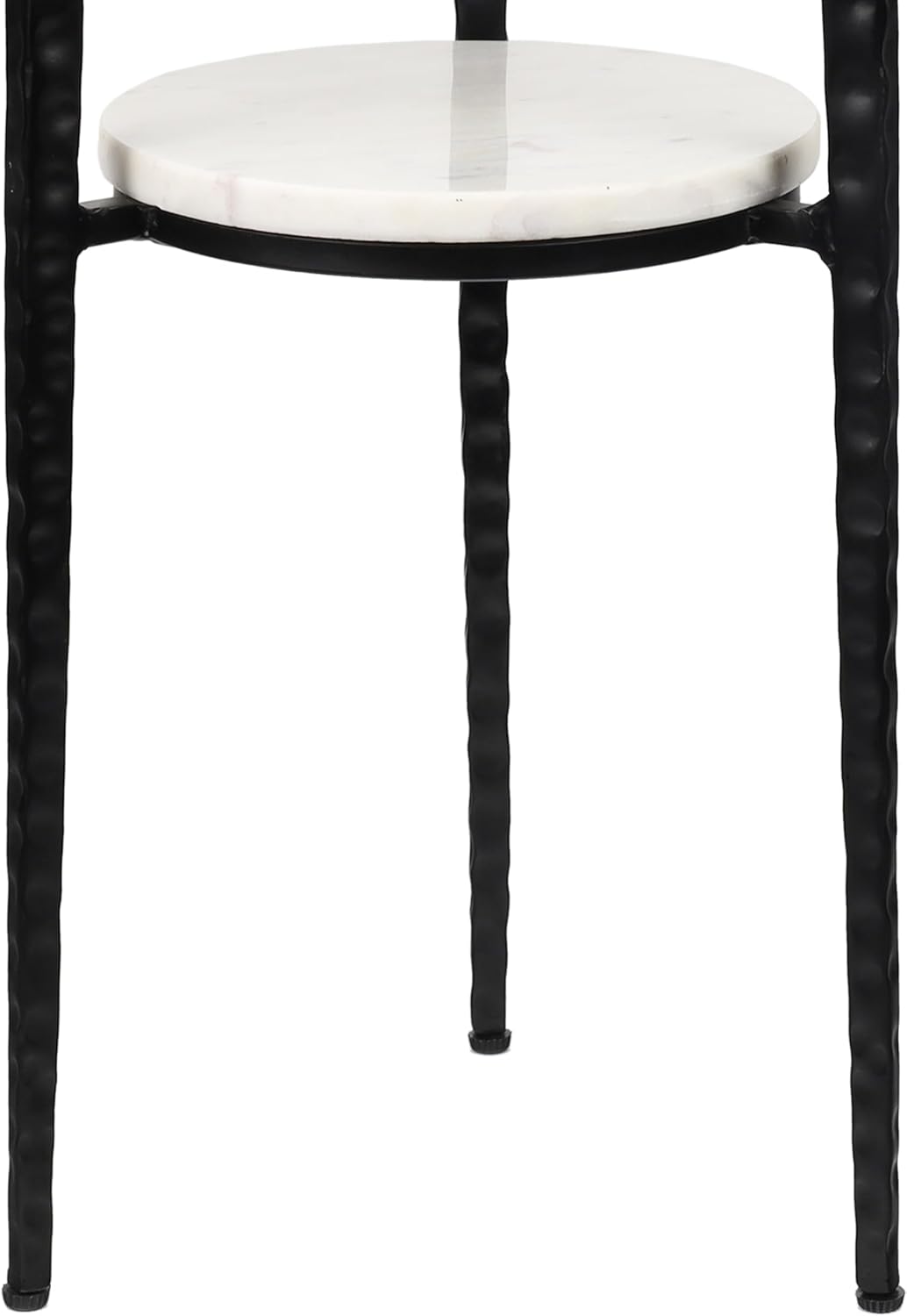 This accent table offers a refined balance of function and form with its dual-tier design. A smooth round top pairs with a lower shelf, supported by a slender metal frame for strength and elegance. Perfect for holding essentials or showcasing décor, it provides versatile utility with timeless appeal.