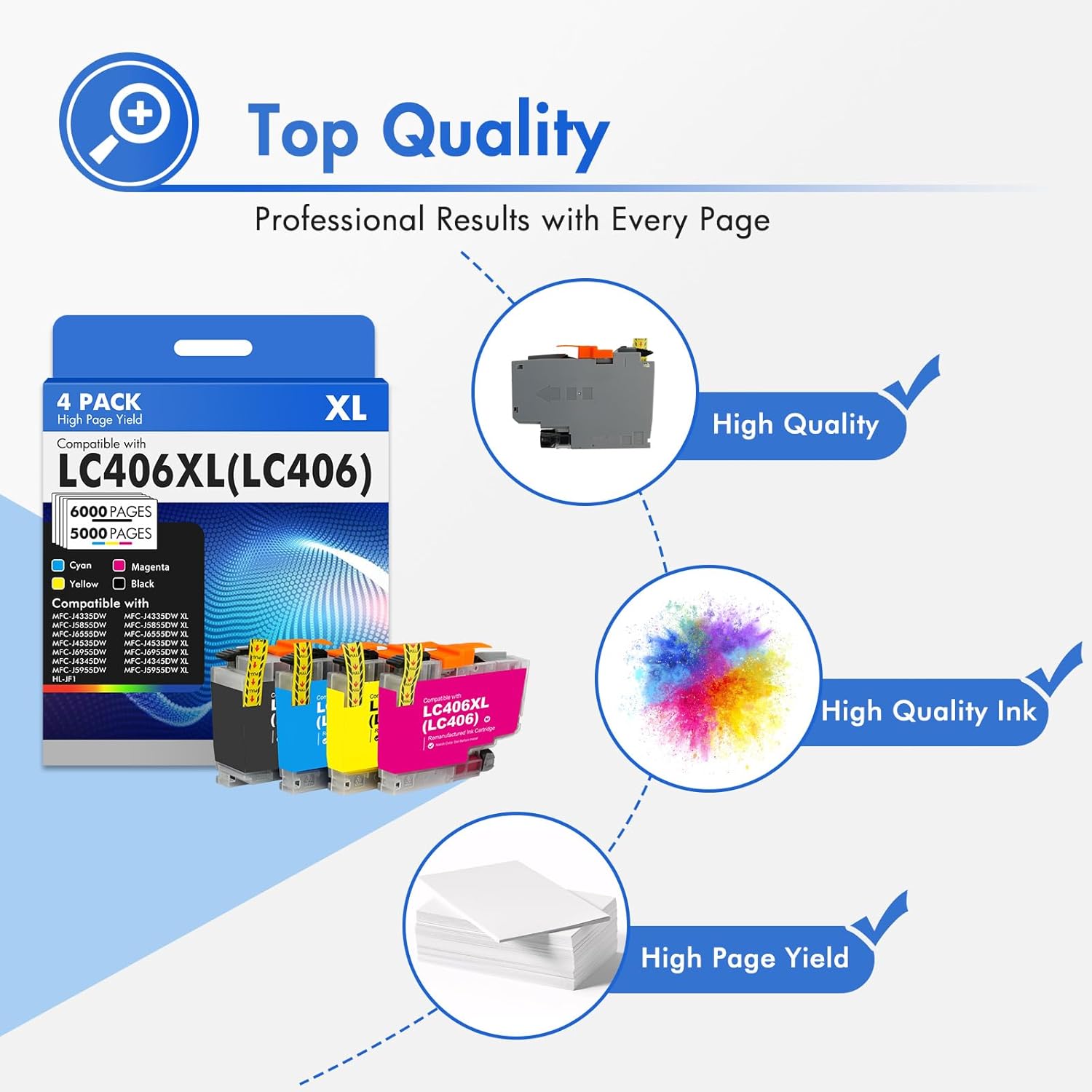 | Compatible Devices | LC406 LC406XL for MFCJ4335DW MFCJ4535DW MFCJ5855DW MFCJ6555DW MFCJ6955DW MFCJ4345DW MFCJ5955DW MFCJ4335DW XL MFCJ4535DW XL MFCJ4345DW XL HL-JF1 |
