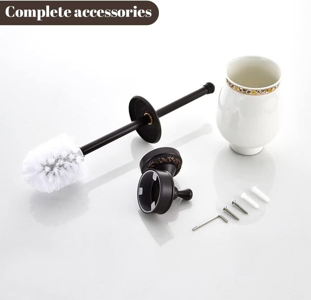 ABOUT THE PRODUCT Type: Toilet Brush Holder and Toilet Brush Cup Style: Antique Finish: ORB Color: Black Material: Brass Ceramic Dimension: L46.5*W11.5cm WHOLE SERIES: single towel bar, double towel bar, towel hook, bath towel shelf, toilet brush holder, double tooth brush holder, toilet paper holder , soap holder decoration style: The item is very suitable for a classically decorated room. Its black color and elaborated patterns show your good taste. Furthermore,?this kind of toilet brush cup is part of the wide range of Leyden bathroom accessories. You can choose what you like from this series and form your own decoration style. MAINTENANCE 1. Clean the surface regularly with water and wipe with a soft cloth. 2.Try to avoid organic solvents and corrosive chemicals coming into contact with the product