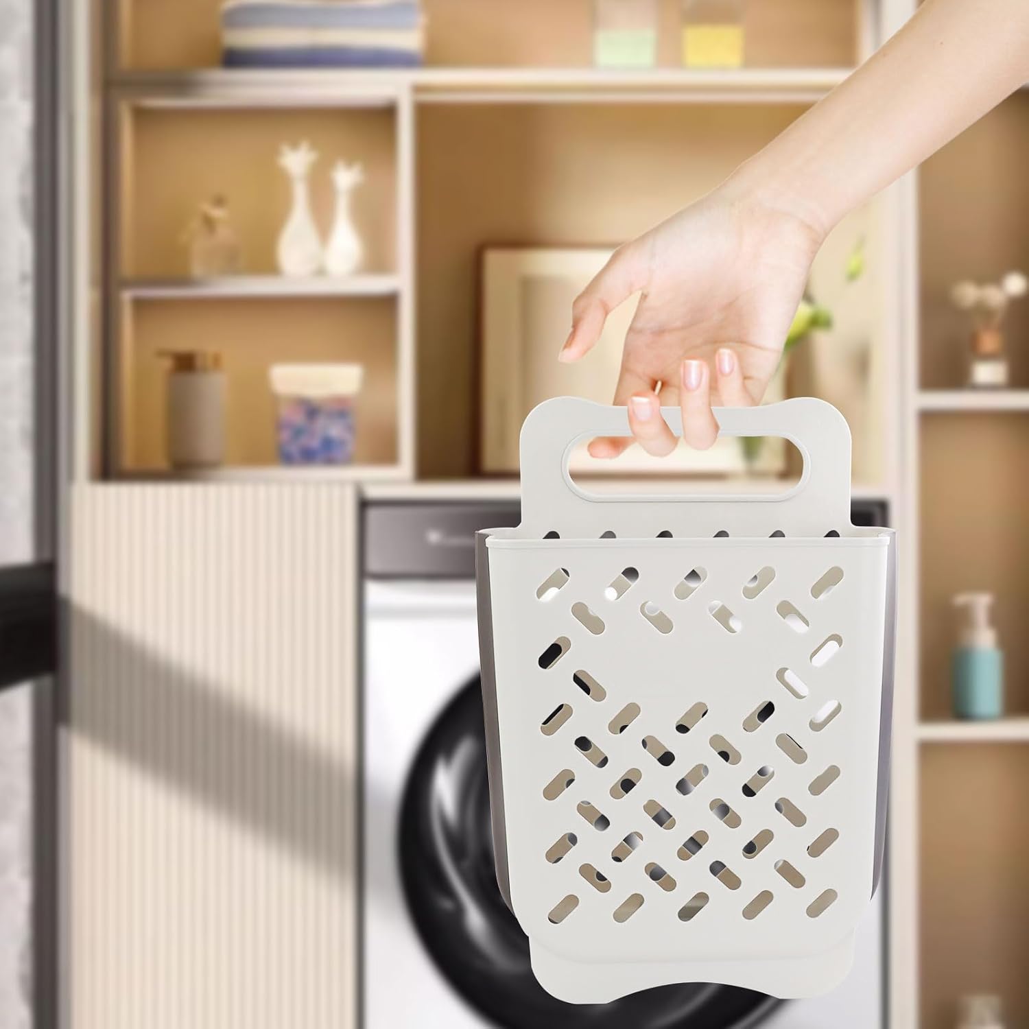 MutiValue Laundry Hamper, Plastic Collapsible Laundry Basket, Portable Wall-Mounted Dirty Clothes Hamper with Hook Space-Saving foldable laundry basket for Room Storage & Organizing (White M+L)