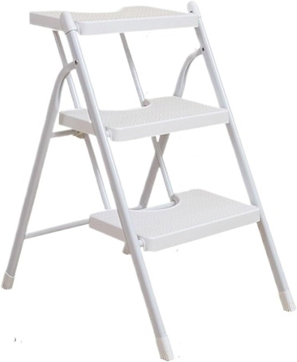 Step stools are especially suitable for small apartments. No need to search for or carry tall ladders; lightweight step stools are portable and readily available, solving the pain point of temporary climbing needs.Material: MetalColor: White, BlackSize:Step 2:Unfold: Top 35.5 * 21.5cm; Bottom 44 * 41cm; Height 50.5cmBefore unfolding: 71 * 7cmStep 3:Unfold: Top 35.5 * 21.5cm; Bottom 57.5 * 41cm; Height 68cmBefore unfolding: 91 * 7cmSpecifications: 2 steps, 3 stepsPackaging: 1 * Ladder stoolProduct InformationThis heavy-duty Folding Staircase Stool combines ladder and stool functionality, ideal for use in kitchens, libraries, balconies, gardens, and more. It features a widened anti-slip tread and reinforced steel frame for maximum safety and durability. The glossy rust-proof surface is easy to clean, while anti-slip foot pads protect floors. Experience all-day comfort and stability with ultra-wide steps\u2014perfect for home or office tasks.Step stools can be used to wipe windows, light fixtures, air conditioners, and clean hard-to-reach areas such as the top of cabinets. They can also serve as temporary shoe-changing stools, bathroom step stools, bar stools, or children's seats.