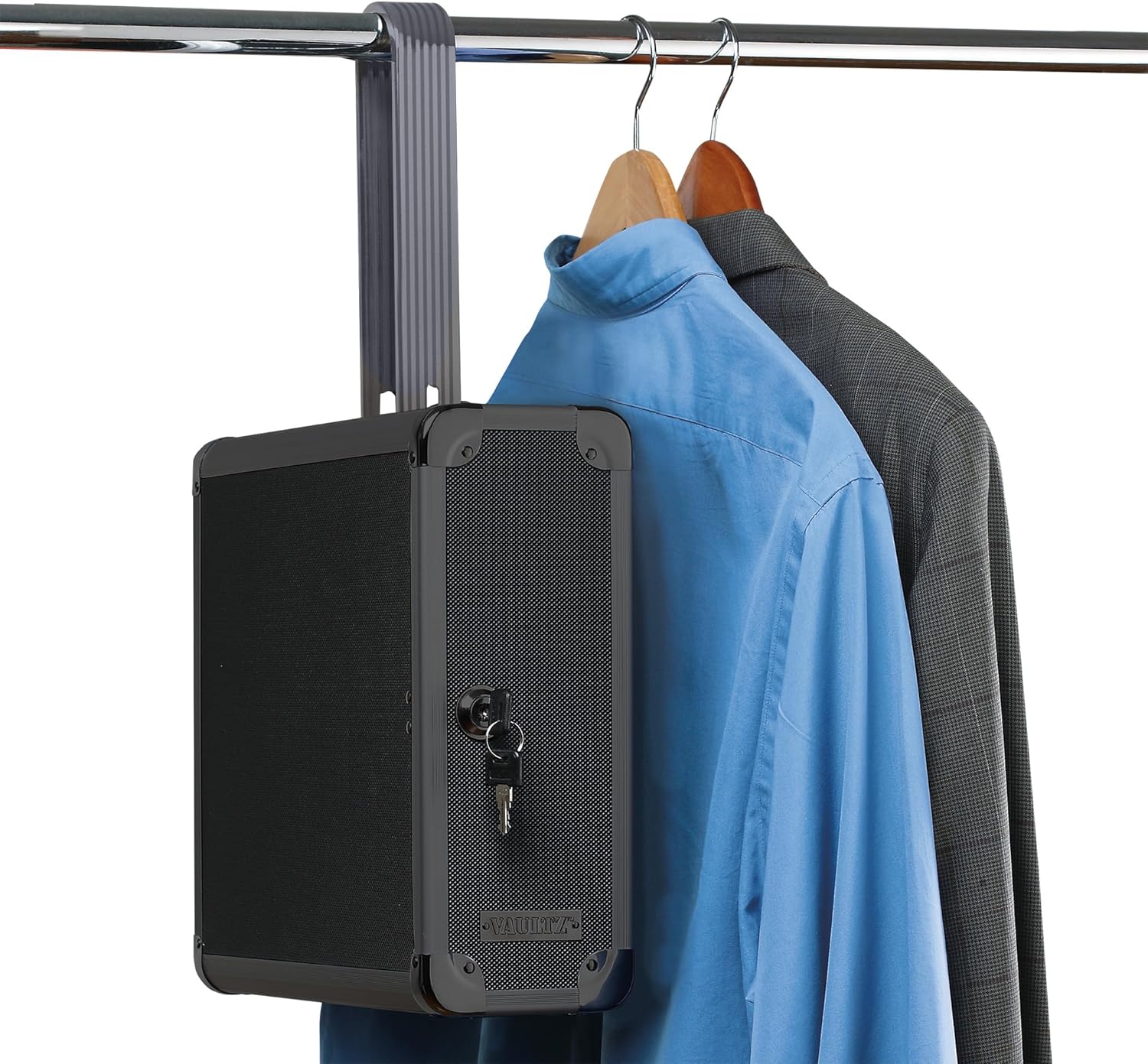 The Vaultz Locking Closet Safe is the perfect way to keep your valuables secure and within reach. Designed to hang easily on any closet rod, this sleek black safe combines convenience, style, and protection. It features a reliable key lock, reinforced metal corners, and sturdy hinges for dependable security. The modern black finish complements any décor while keeping your belongings discreetly out of sight. Ideal for storing important documents, electronics, and personal treasures, it’s a smart and stylish addition to any home.